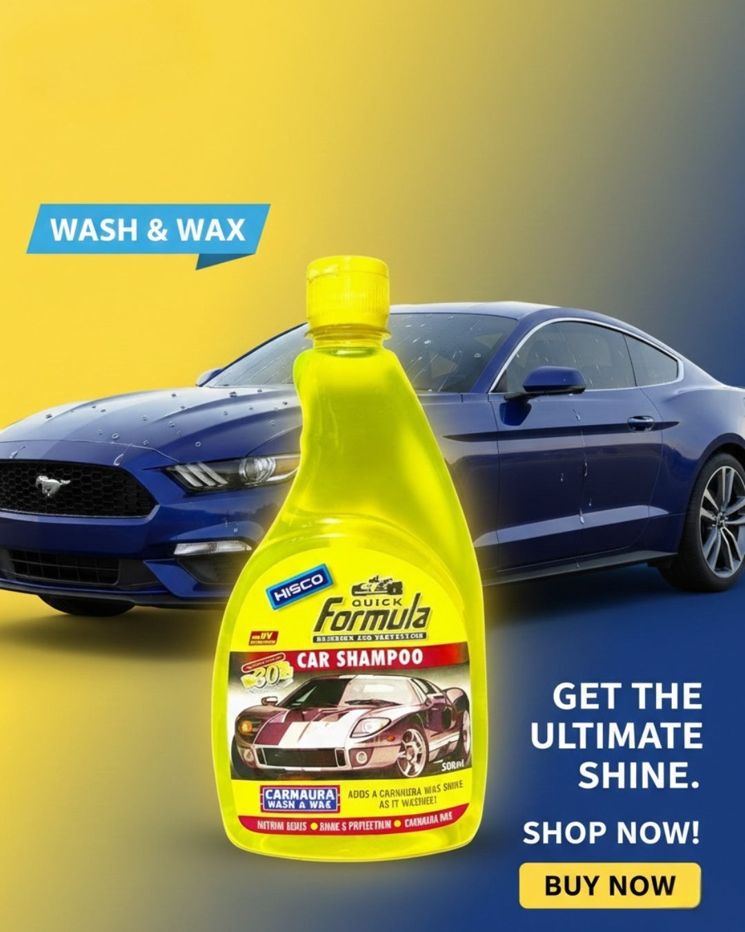 Upgrade your car care routine with FORMULA Car Shampoo with Carnauba Wax, a premium 2-in-1 formula designed to clean your vehicle gently while delivering a long-lasting, mirror-like shine. Infused with real carnauba wax, this shampoo offers unbeatable gloss and protection every time you wash.