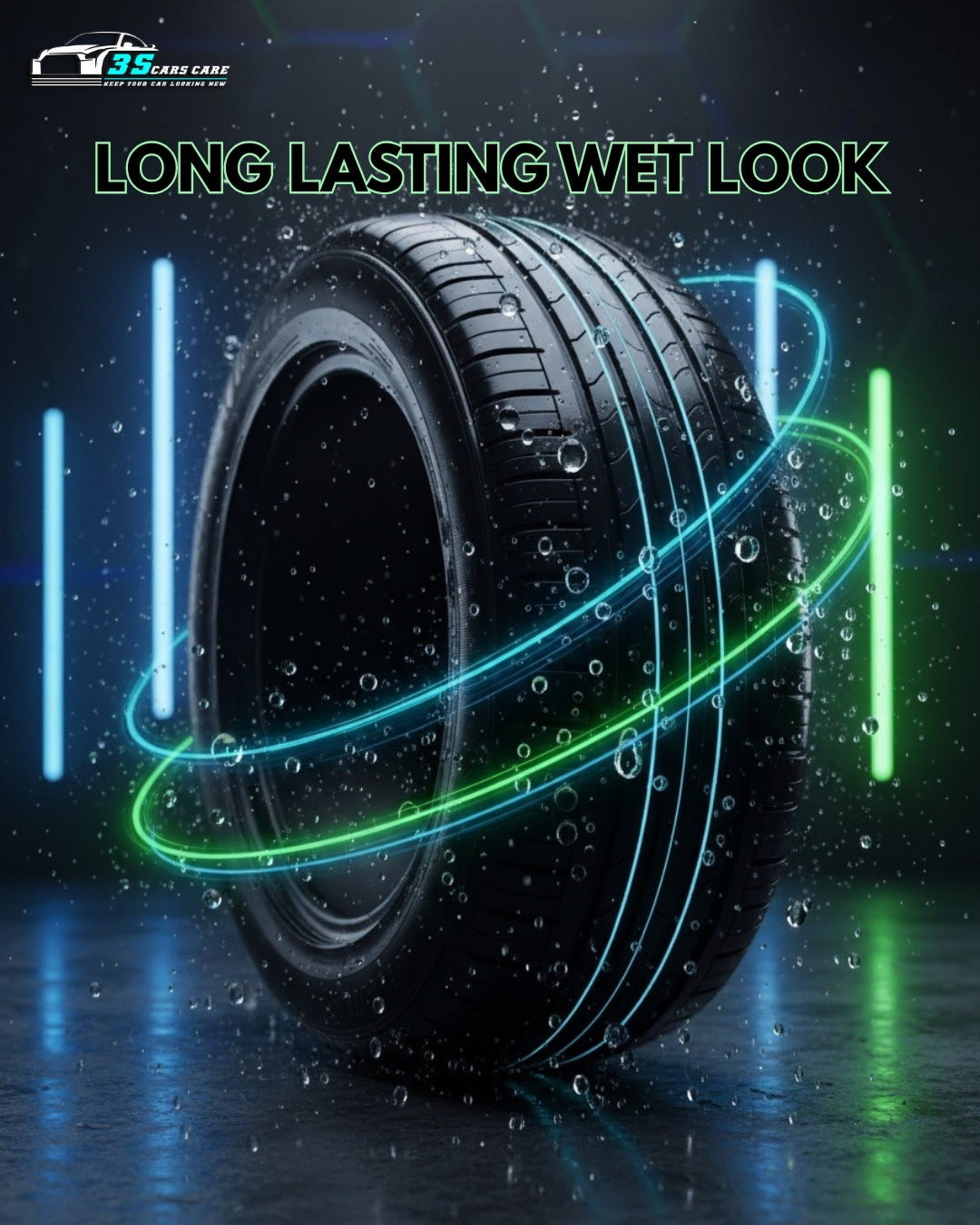 Keep your tires looking bold, black, and brilliantly shiny—only with THREE GUYS Tire Shine Plus 250ml.