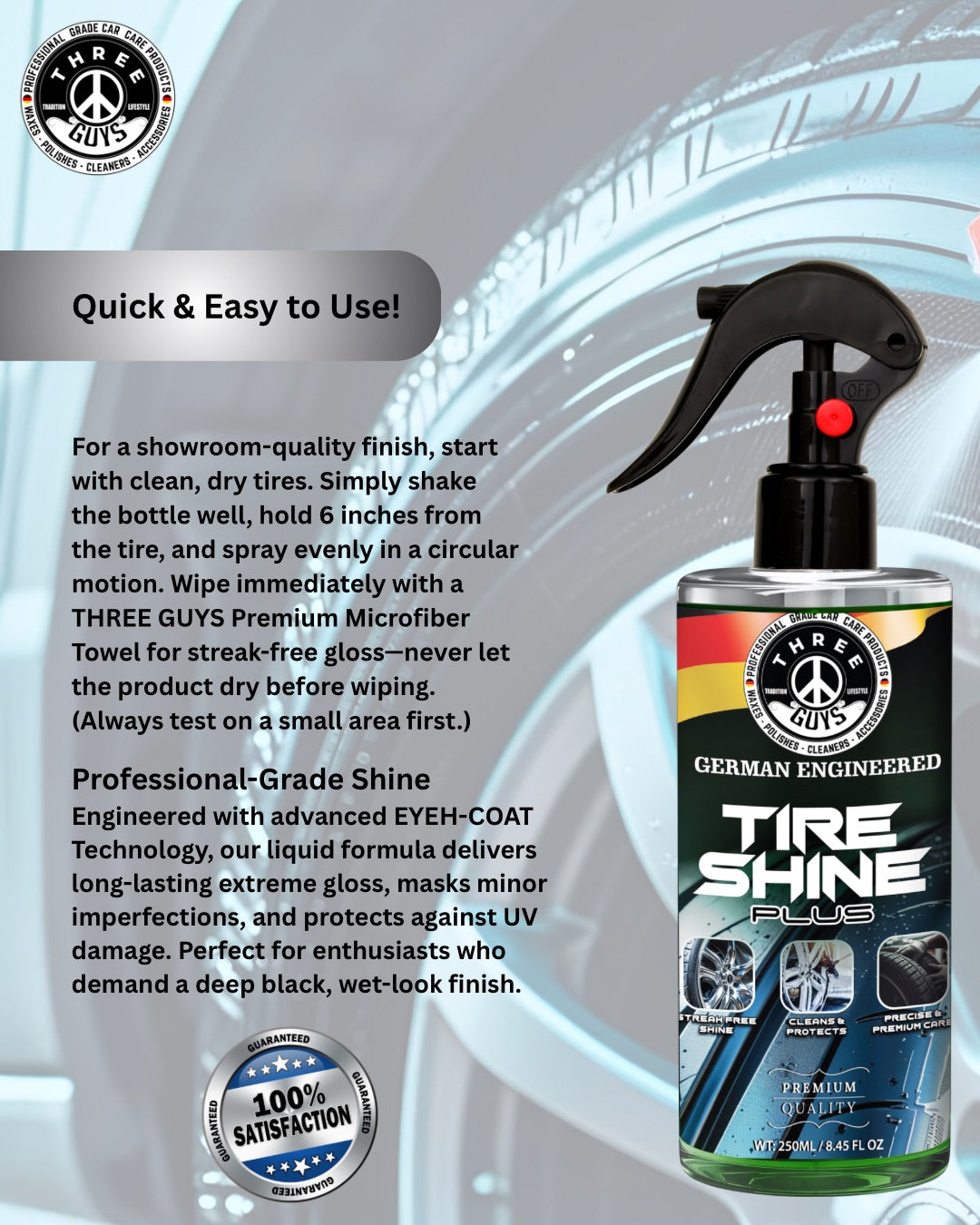 Tire Shine Plus – Streak-Free Shine – 250ml | THREE GUYS - German Engineered